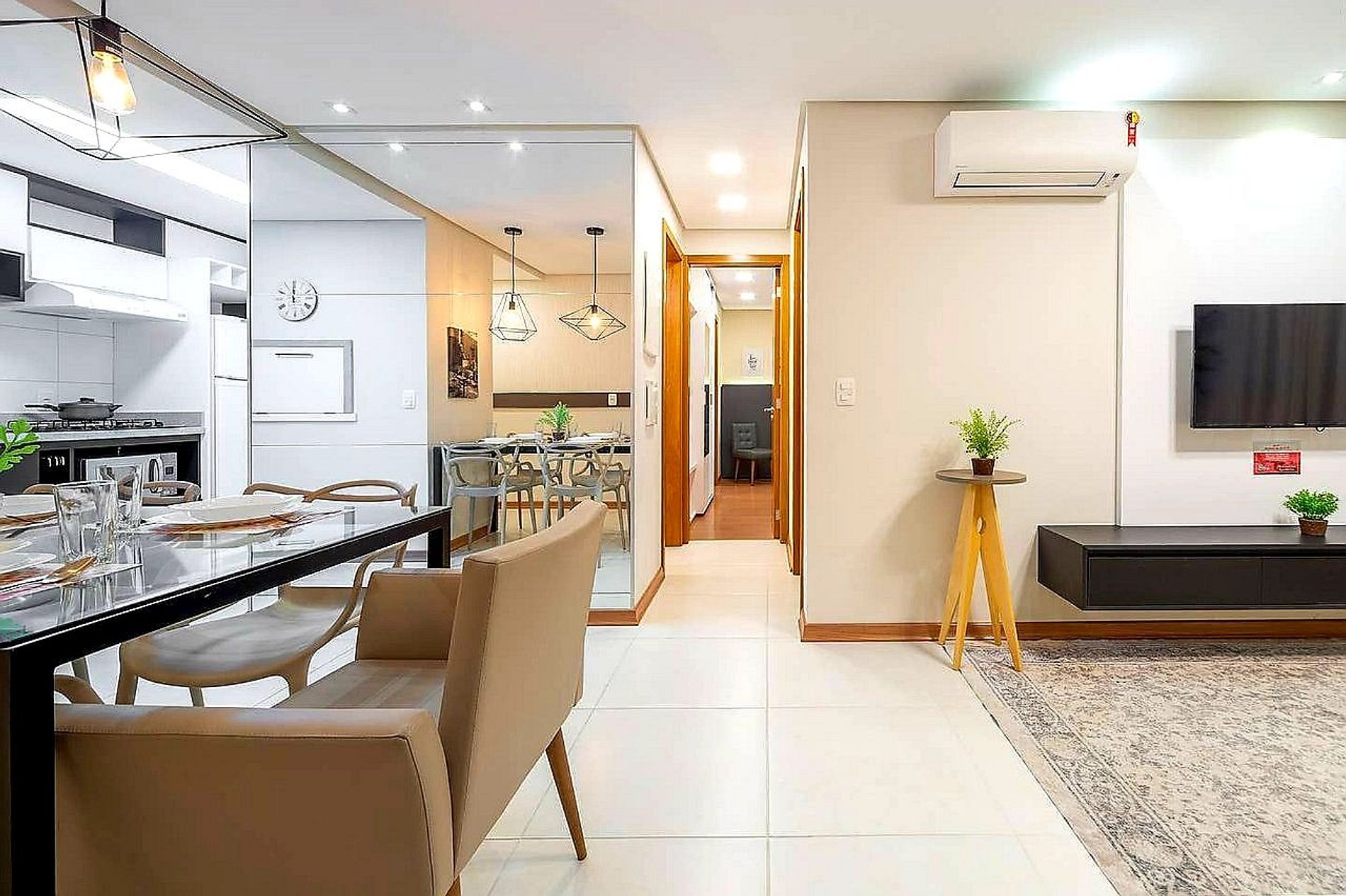 O apto é muito bonito, as camas confortáveis, ar condicionado e localização tranquila, de a pé a rua coberta da 15 a 20min. Prédio bem cuidado, me senti segura.